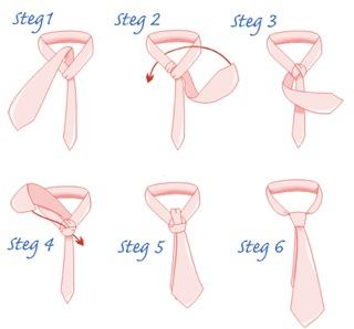Här nedan finns det sex förslag på olika knutar. Den som brukar vara bäst om man vill ha en lite större välformad knut är windsor